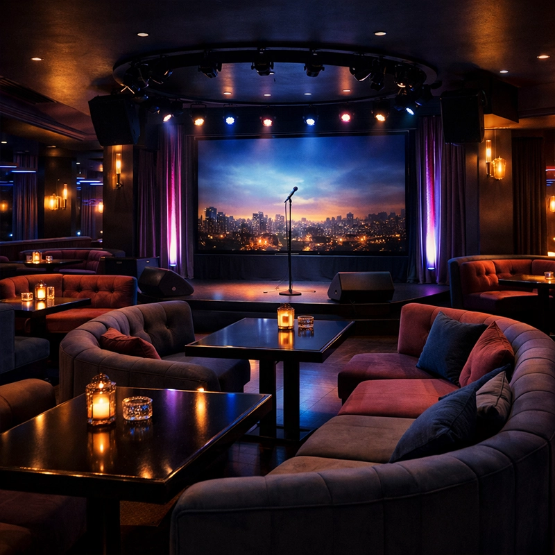 Мы продумали пространство так, чтобы каждый вечер проходил легко и без лишнего напряжения. Здесь не нужно подстраиваться под шум или формат, всё работает на комфорт, от звука до посадки и общей атмосферы.
